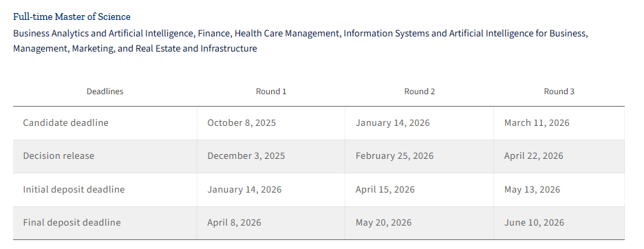 本科学历(可认可3年以上本科学历),专业不限,适合应届生或早期职业人士(工作经验≤3年),已有工作经验者可提供相关证明申请豁免GMAT/GRE;