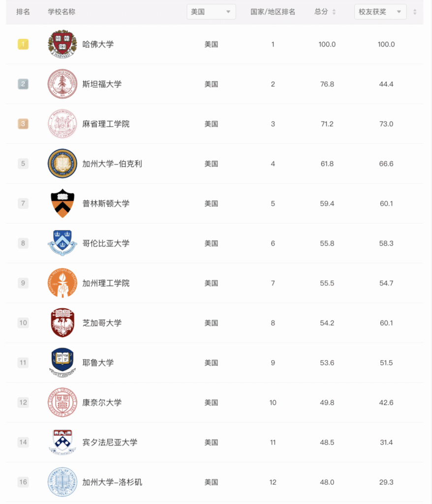 美国大学名次就更不用说了,毫无悬念霸榜。