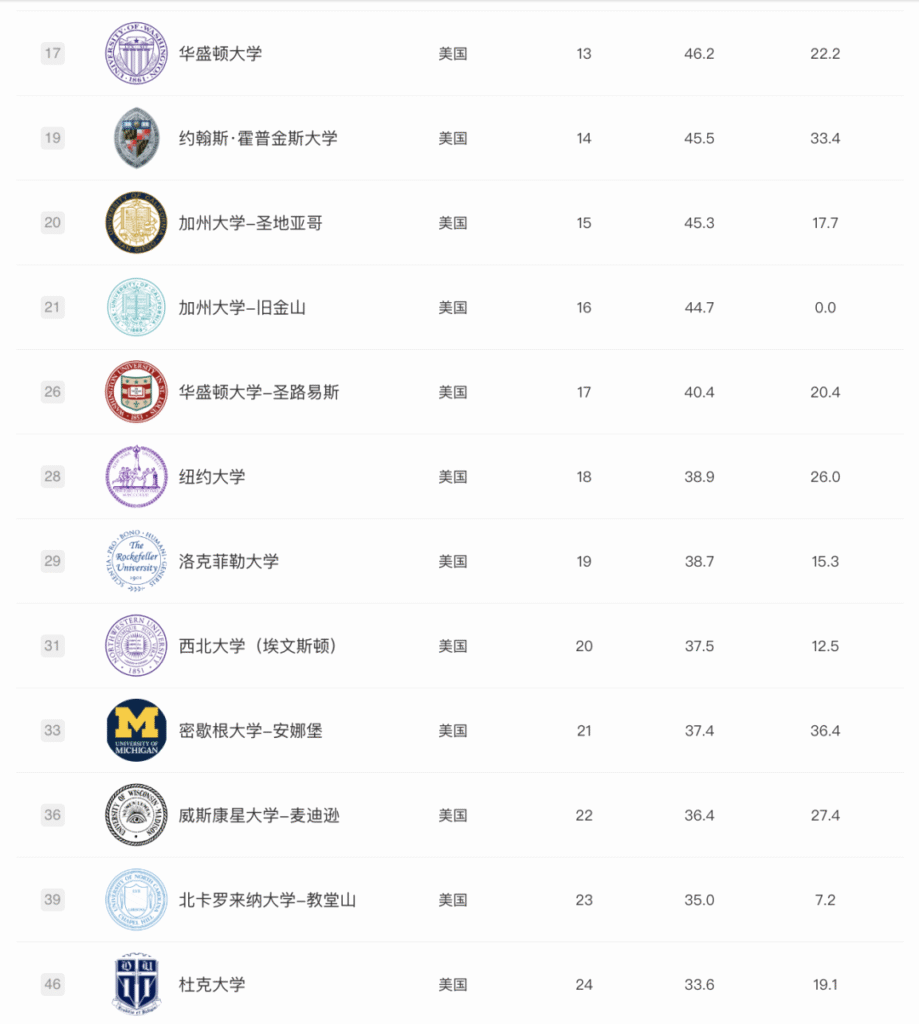 还有南加大的软科排名到第68,布朗大学跌出前100,达特茅斯、圣母大学300开外,乔治城大学400开外……