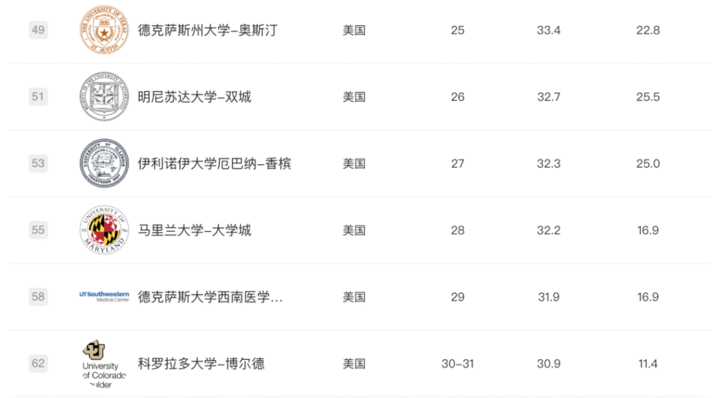 比如范德堡大学U.S. News综排第 18,软科排名却不敌明尼苏达大学-双城分校、马里兰大学,取得了第62名。