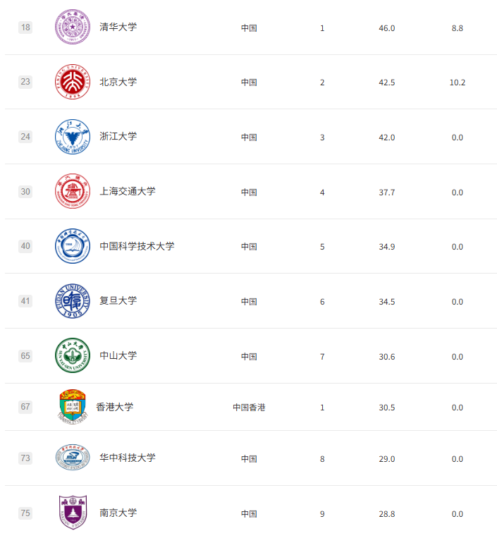 中国高校崛起,清华大学历史性地冲进全球前20,位列第18,成为亚洲第一!北大、浙大、上交大等校也纷纷攀升。