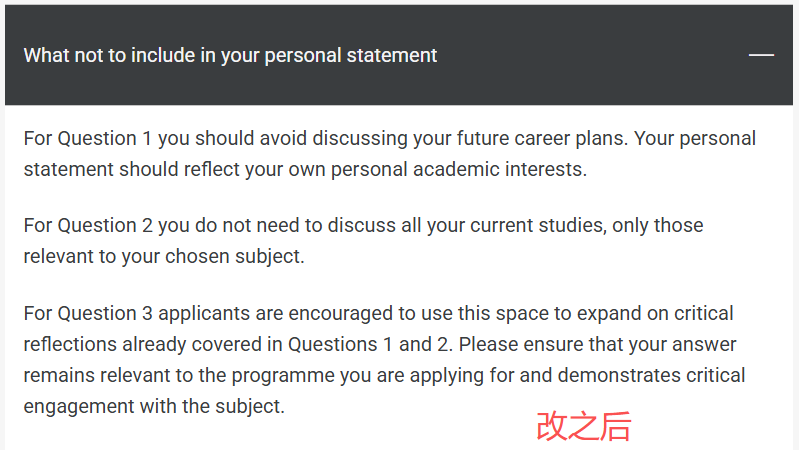 这次调整彻底解决了申请者“一套文书申多校却要反复调整”的痛点,与牛剑、UCAS的文书逻辑正式对齐