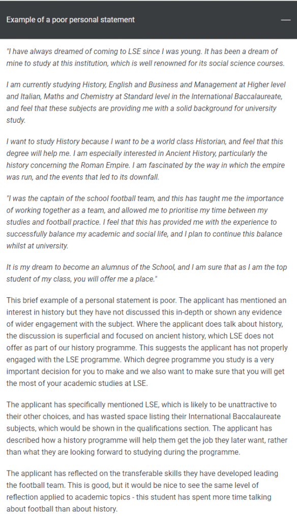 为了帮助申请者避开常见误区,LSE贴心地给出了反面案例。