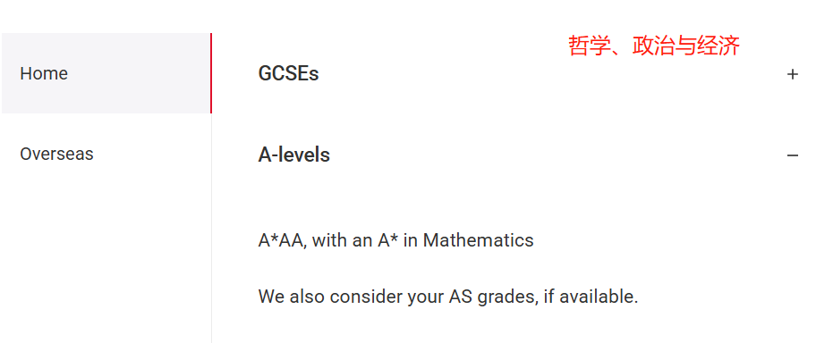 A-level:A*AA,数学需 A*,参考 AS 成绩(如有);