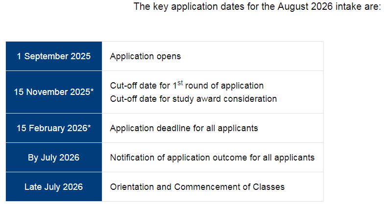 这不,NUS商学院终于也坐不住了。2026fall授课型硕士项目的申请时间有较大调整,除商业分析硕士外,其它项目几乎全线提前到2025年9月1日开放申请,第一轮截止时间提前到11月15日。具体如下: