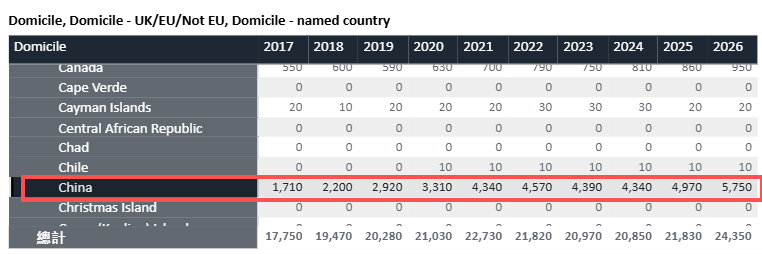 特别是中国学生的申请量激增了15.7%,总数达到5,750(去年4,970)。